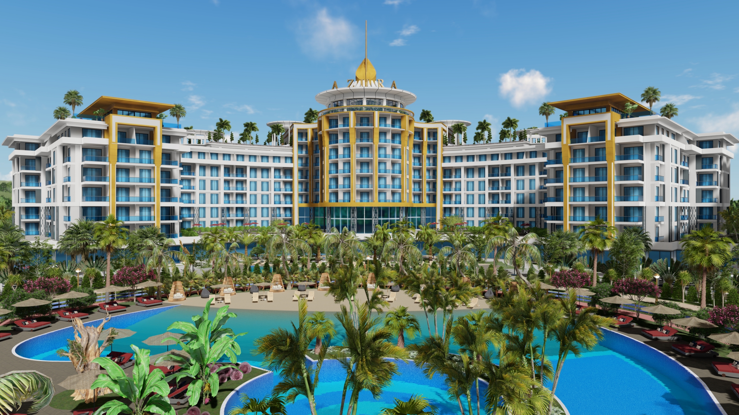 Azura World, Turkey’s largest Residence & Hotel & Entertainment concept project, in the most beautiful location of Alanya, on its own land and with its own resources becomes the symbolic project as a result of the 40 years of experience of Cebeci Group A.Ş.